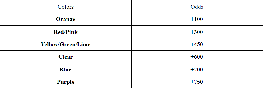 - Clear/Water +650 (There’s many Gatorade flavors with a clear/white color. And it covers water as well, who can go wrong with that. Also, it is said that Tom Brady does not drink Gatorade so this bet can cover many bases. High reward as well so might as well go with it).