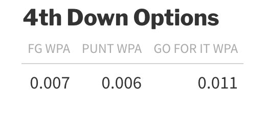 Judging by STALEY’s output, it says the largest win percentage we can expect to add to our team’s total is 1.1%, in the case that we go for it. There are a couple of other takeaways we get from this example.