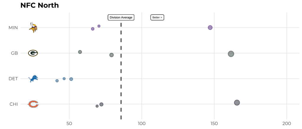 - The Lions have very little help from their LBs. All three didn’t even come close to the division average