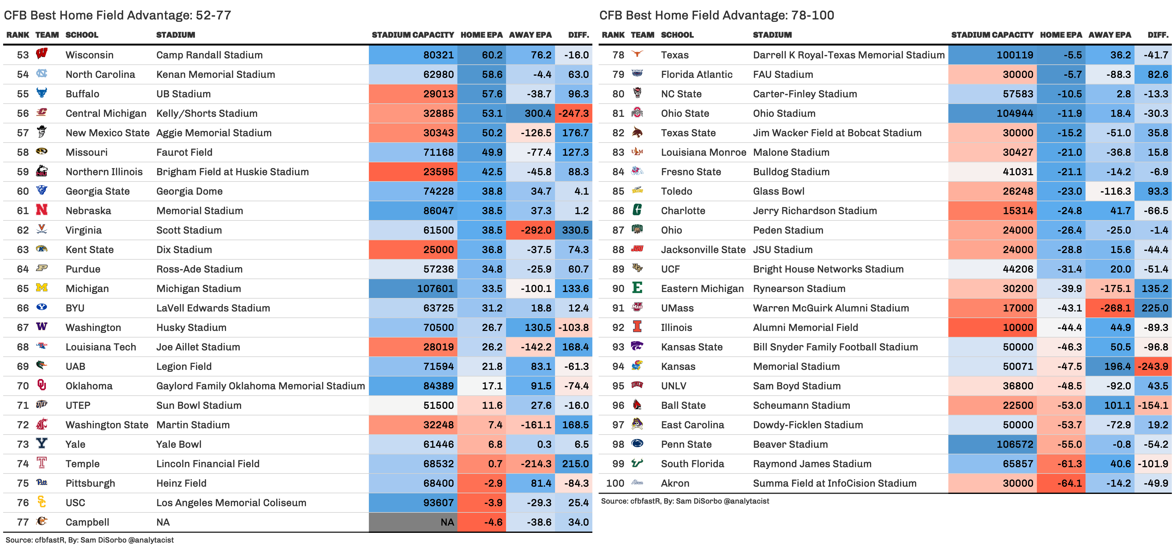 -Ohio State at 81 overall is quite astonishing, especially as we notice their negative cumulative EPA at home. Embarrassing!