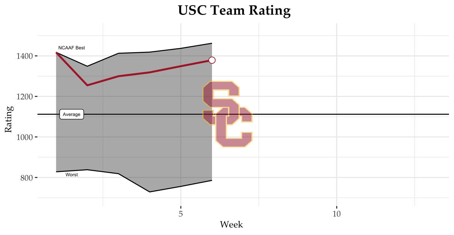 Despite Utah’s low rank, this matchup is going to be quite the showdown. Can USC outscore Utah’s high-powered offense? The SAM model has USC with a 75.8% chance to win.