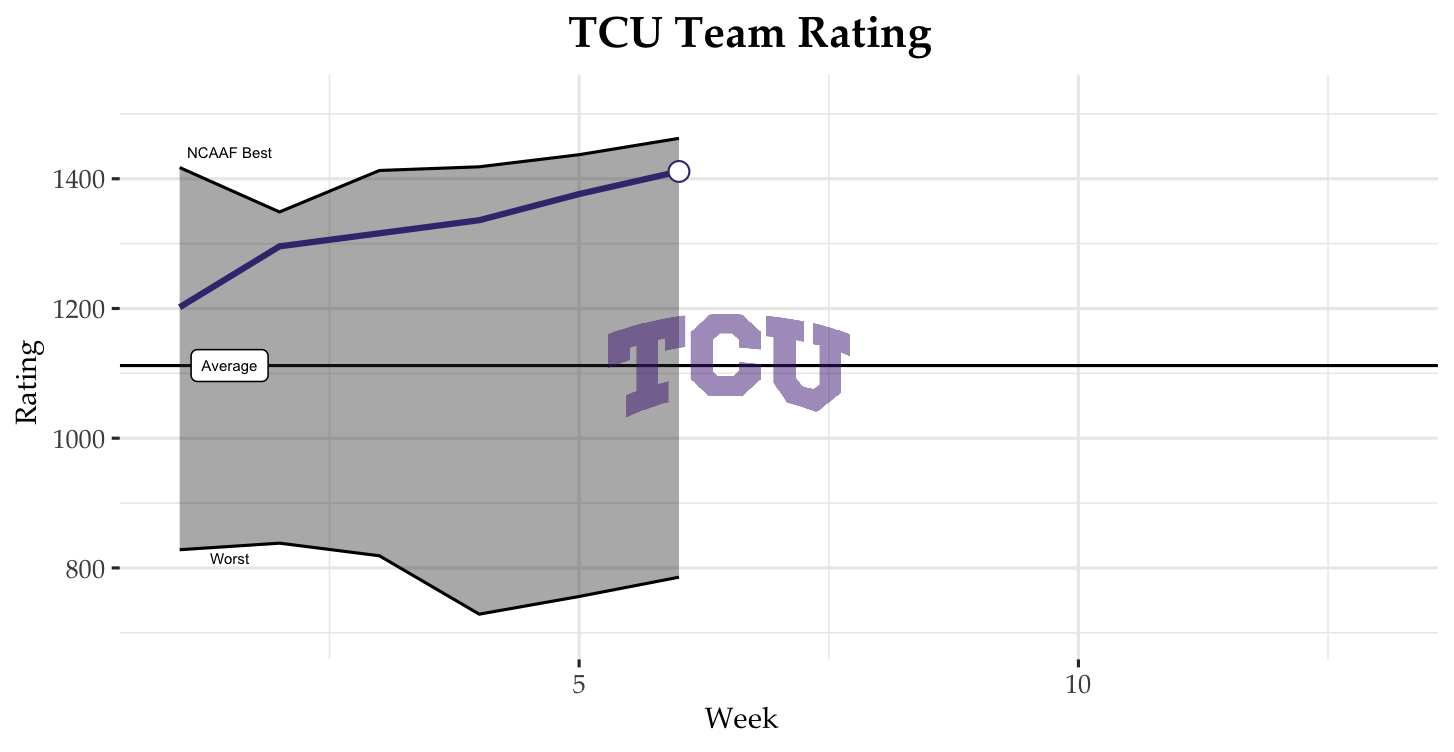 After taking down undefeated Kansas (30), a win in this game could give TCU an argument for a top 5 ranking. The SAM model gives them a 58.4% chance to win this game.