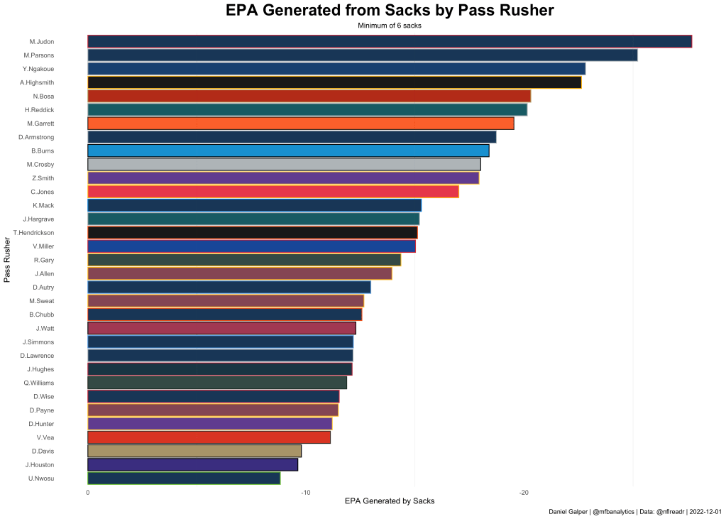 Miller has generated the 16th most negative EPA through sacks this season and the impact of losing on this Bills defense cannot be understated.