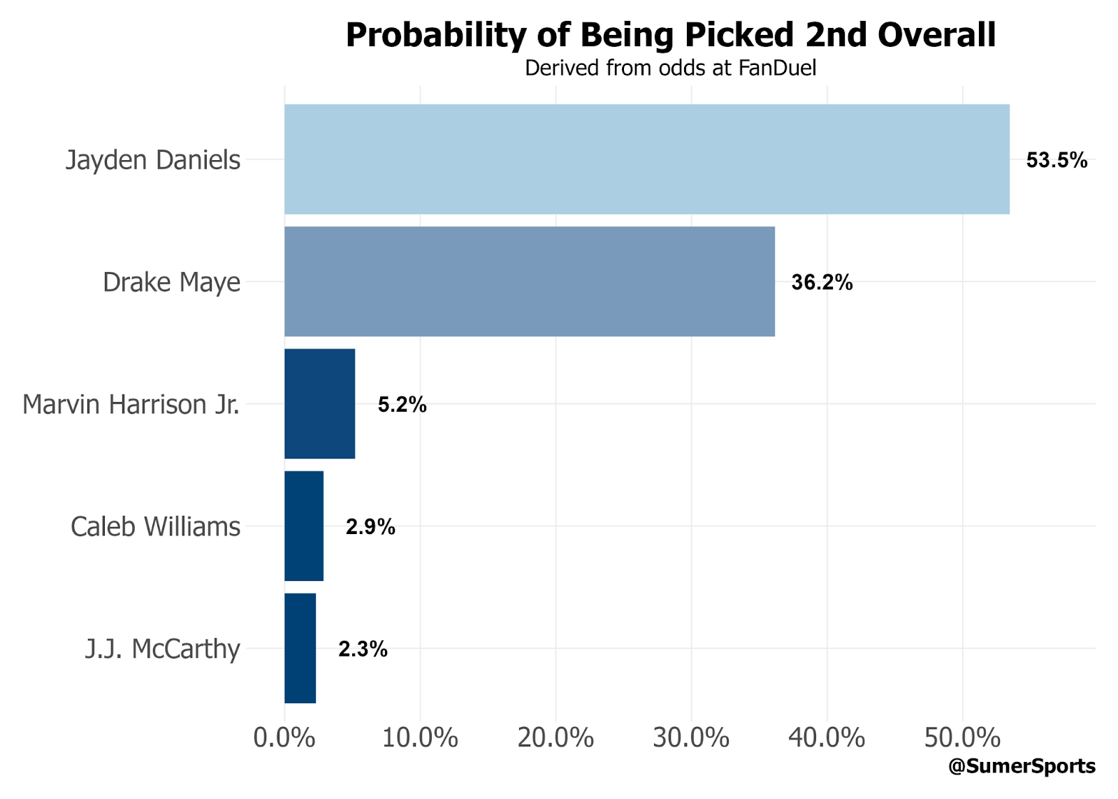 The market currently has the Commanders slated to take one of either Jayden Daniels or Drake Maye. While I believe Drake Maye is the better option for Dotson and the Commanders, it is expected that whoever they take at number two overall will be the best quarterback this team has had in a long time.